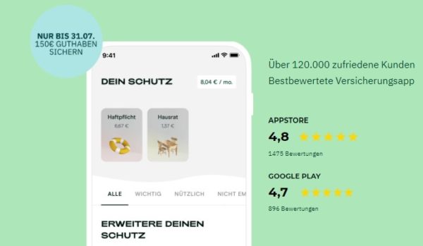 Bis zu 150€ App-Guthaben für Versicherungen geschenkt