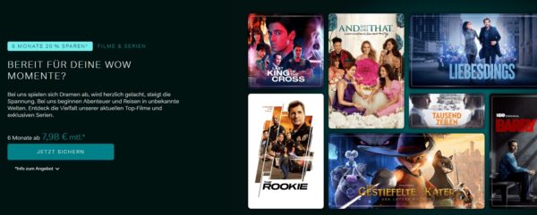 Ihr bekommt z.B. das Film und Serien-Paket für 7,98€/Monat statt 15,98€/Monat
