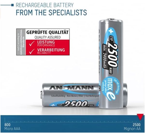 Bei Amazon gibt es den 4er-Pack ANSMANN Akku (AA – 2.500 mAh) für 4,68€ (Vergleichspreis: ~10€) Ersparnis ~5€