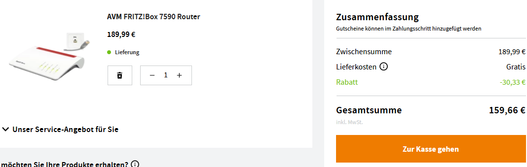 Bei Amazon gibt es für unbestimmte Zeit die AVM FRITZ!Box 7590 für 192,44€ (Vergleichspreis: ~210€) Ersparnis ~18€