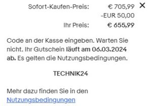 Nutzt den Gutschein TECHNIK24 und schon kommt ihr auf den genannten Preis.