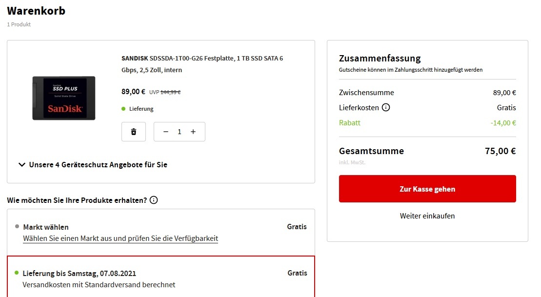 AlphaTier 04.08.2021, 12:29 #Also bei mir funktioniert das noch, 14 € Rabatt werden abgezogen. Endpreis ist allerdings 75 €. Gegenüber dem Preisvergleich (87,40 €) noch ne schöne Einsparung.