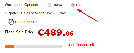 Nachtrag: ihr müsst als Warehouse HK (Hongkong) auswählen;