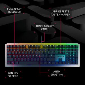 - Lebendige RGB-Hintergrundbeleuchtung mit über 16 Mio. Farben: Zahlreiche integrierte Farbspiele und Lichteffekte (Individuell programmierbar mit der CHERRY UTILITY Software)
