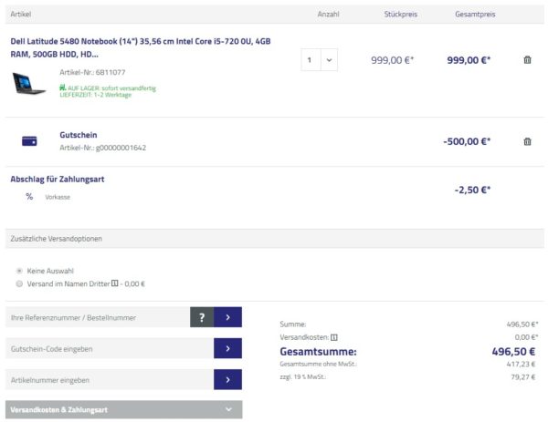 Das Notebook wird seitens Office-Partner versandkostenfrei geliefert.