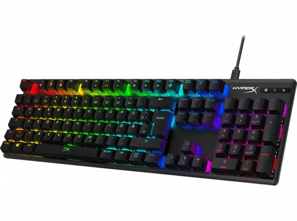 - Mechanische HyperX Tasten. Drei einstellbare Tastaturwinkel. Interner Speicher für drei Profile
