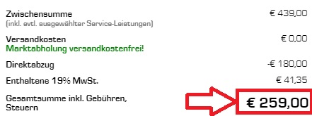 Der Preis kommt durch einen Rabattabzug im Warenkorb zustande. Da das Notebook gerade erst reduziert wurde, ist die Frage, ob der zusätzliche Rabattabzug so gewollt ist ?