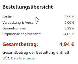 für 4,94€ (Vergleichspreis: ~9€) Ersparnis 4€