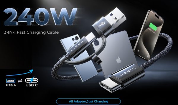 - 【3-in-1 Kabel für jedes Gerät】Ein USB C Kabel, mehrere Anwendungen! Das LISEN 240W schnellladekabel usb c kann leicht zwischen USB-A auf USB-C und USB C auf USB C Kabel Verbindungen wechseln, was es mit einer breiten Palette von Geräten kompatibel macht, einschließlich Smartphones, Tablets, Laptops und mehr. Dieses Datenkabel ist Ihre All-in-One-Lösung.