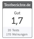 4,1 von 5 Sterne. Auch bei Testberichte.de gibt es mit der Gesamtnote „gut“ (1,7) eine Bewertung mit der gleichen Tendenz.