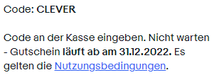 Um auch auf den Preis zu kommen, müsst ihr den Gutschein CLEVER verwenden.