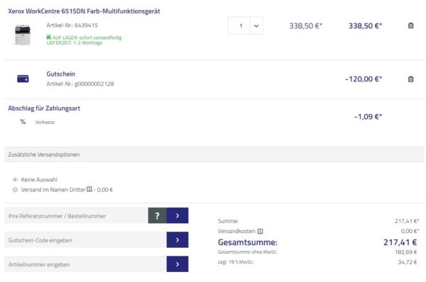 Bei OFFICE Partner bekommt ihr gerade das XEROX WorkCentre 6515DN Farb-Multifunktionsgerät für 218,50€ (Vergleichspreis: ~315€) Ersparnis ~96€