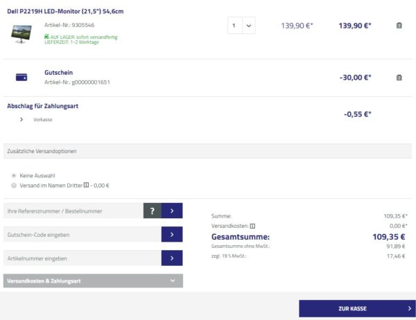 Der Monitor wird seitens Office-Partner versandkostenfrei geliefert.