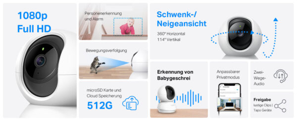 - Hohe Auflösung – Erfassen Sie jedes Detail in kristallklarer 1080p-Auflösung