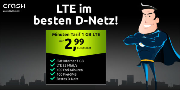 Bei Vitrado gibt es nun für kurze Zeit wieder den beliebten Crash Tarif im Telekom-Netz. Ihr erhaltet 1 GB LTE Datenvolumen inkl. 100 Minuten & SMS für 2,99€/Monat. 🙂