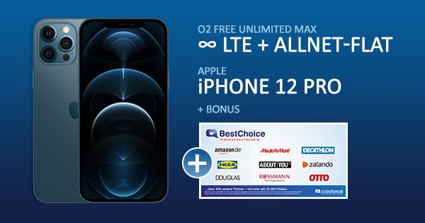 Neuer BonusDeal von O2! Hier erhaltet ihr jetzt das Apple iPhone 12 Pro + O2 Unlimited Max + 100€ BestChoice-Gutschein für 64,99€/Monat!