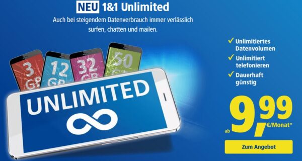 1&1 hat seine Unlimited Tarife überarbeitet und bietet euch nun Tarife ab 9,99€/Monat an.