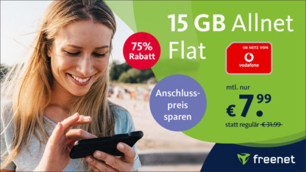 Ja wie geil ist das denn? Auch freenet haut zum Prime Day eine fette 15 GB LTE AllnetFlat (VF) für 7,99€/Monat raus! Und das auch noch ohne Anschlusspreis. 🙂