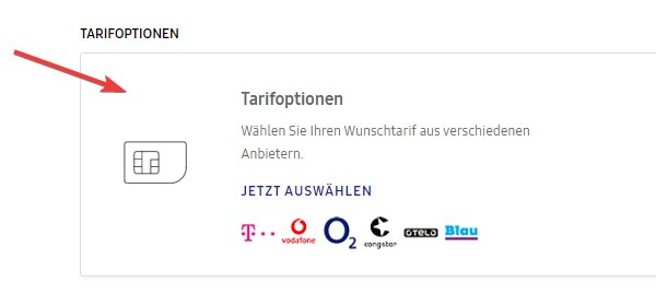 - Scrollt herunter bis zur Auswahl der Tarifoptionen