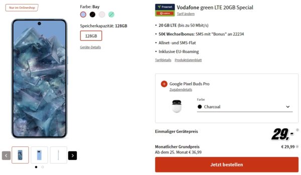 Krasses Angebot! Bei MediaMarkt erhaltet ihr das Google Pixel 8 Pro + Google Buds Pro + 20 GB LTE AllnetFlat für eff. -9,51€!