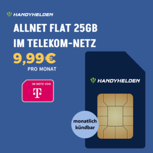 Aufgepasst! ☝🏻 Bei Handyhelden erhaltet ihr nun eine 25 GB 5G AllnetFlat im besten Netz der Deutschen Telekom für 9,99€/Monat!
