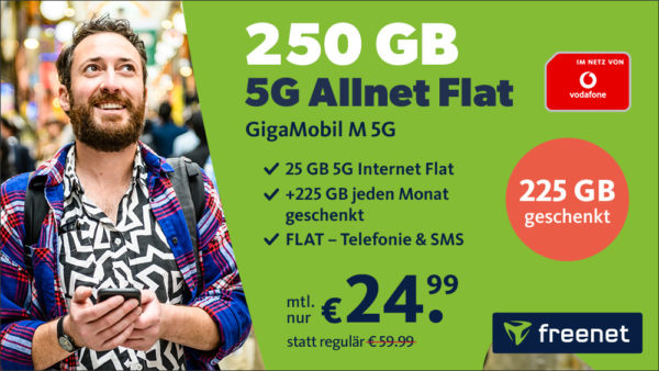 Krasser Tarif für alle Powersurfer unter euch😮, bei freenet bekommt ihr jetzt eine 250GB LTE/5G + Alles-Flat im Vodafone-Netz für 24,99€/Monat