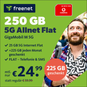 ⏰ *TOP* 250GB LTE/5G (bis zu 300 Mbit/s, GigaDepot) + Alles-Flat im Vodafone-Netz für 24,99€/Monat