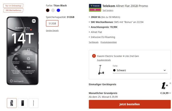 *332€ ERSPARNIS* XIAOMI 14T Pro + 20 GB Telekom 5G AllnetFlat für eff. -13,85€/Monat