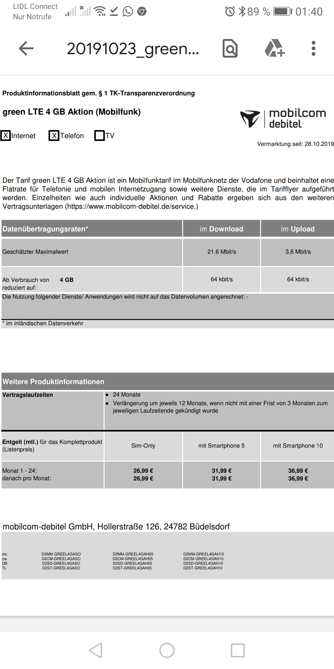 Als es ankam fande ich in den Unterlagen etwas was mir Sorge macht und zwar ein Blatt mit der Ueberschrift : Produktinformationsblatt, dort stehen andere monatliche Grundgebueheren. (siehe Anhang). Bitte um schnelle Hilfe.