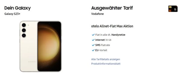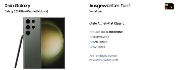 Die Rechnung mit S23 Ultra 1TB über 24 Monate würde so aussehen: