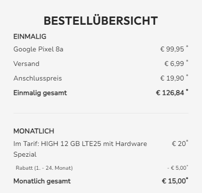 Wer gerade ohnehin überlegt hat sich das Pixel 8A zuzulegen, bekommt hier noch eine schicke 12 GB Flat on top! 🙂