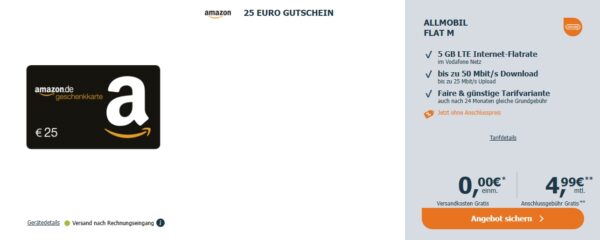 Allmobil AllnetFlat M mit 5 GB Datenvolumen im VF-Netz für eff. 3,95€/Monat