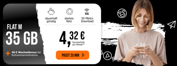 - Flat M 5,99€ / 35GB / 40€ WB / eff. 4,32€ allmobil Flat M Black Week Vodafone