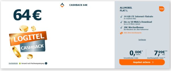 - 64€ Cashback seitens LogiTel