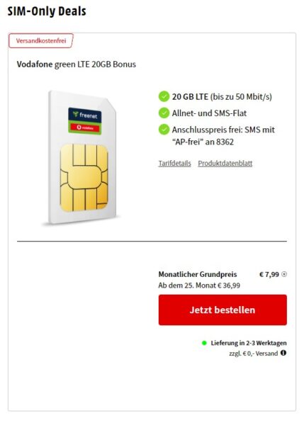 Dort gibt es eine Allnet-Flat + 20 GB im VF-Netz für nur 7,99€/Monat.