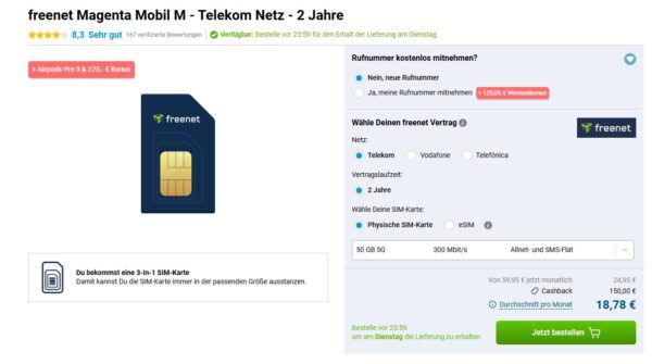 - Extra obendrauf: 150,- € Cashback (SMS mit „Cashback“ an 61131)