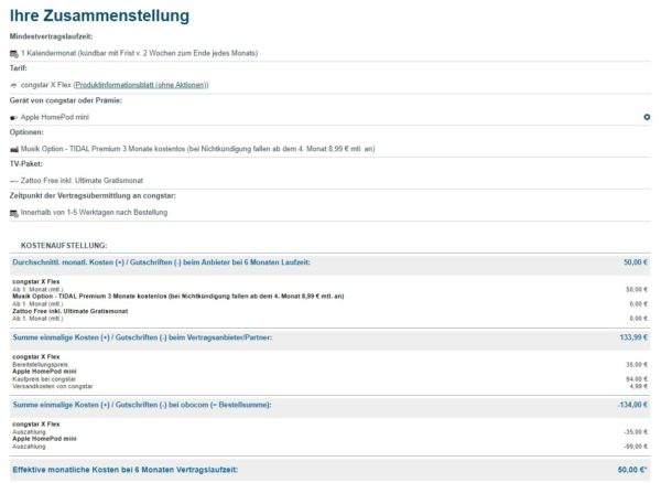 Da haben wir wieder einen schönen Deal aus der Kategorie: Das liegt sehr wohl Geld auf der Straße! Denn obocom schenkt euch gerade einen Apple HomePod Mini (Wert 89€) für den congstar X Flex Tarif. Dieser ist monatlich kündbar und bei rechtzeitiger Kündigung entstehen euch maximale Kosten in Höhe von 50€.