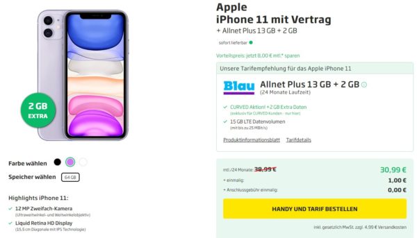Fazit: Hier bekommt ihr das iPhone 11 inkl. 15GB LTE + Alles-Flat für effektiv 6,03€/Monat