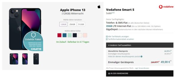 Fazit: Für alle die das iPhone 13 inkl. Tarif suchen könnte dies genau das richtige Angebot sein.