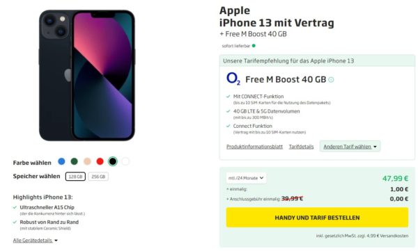 Fazit: Hier bekommt ihr das iPhone 13 inkl. 40 GB LTE + Alles-Flat für effektiv 14,07€/Monat