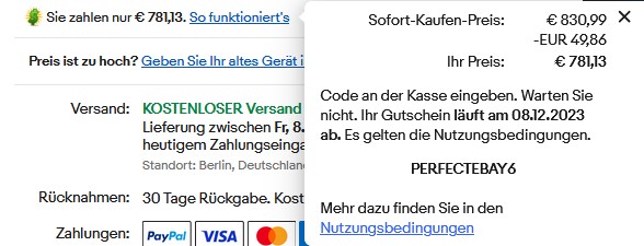 Der Bestpreis der letzten Tage lag jedoch bei 939€ von Neuware. Somit spart ihr euch hier mindestens >150€ gegenüber Neuware.