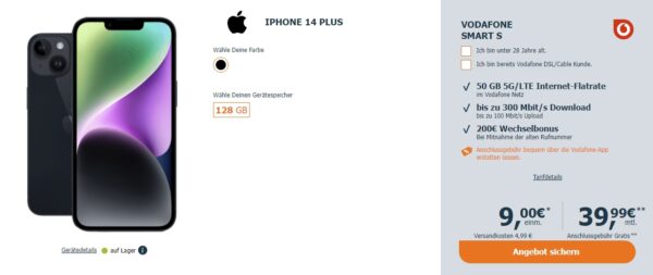 Apple iPhone 14 Plus + 50 GB LTE AllnetFlat (VF) für eff. 2,87€/Monat