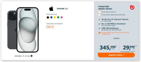Fazit: Schönes Angebot mit dem iPhone 15, als Young oder Vodafone DSL/Cable Kunde könnt ihr sogar noch mehr sparen.