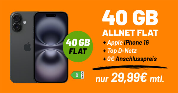 Neuer Deal seitens klarmobil, dort bekommt ihr das Apple iPhone 16 128GB + 40GB 5G + Alles-Flat im Vodafone-Netz für 29,99€/Monat