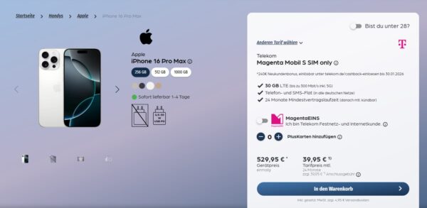 Fazit: Starker Deal mit dem iPhone 16 Pro Max im Telekom-Netz, bei Interesse nicht lange zögern.