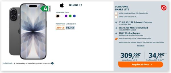 Fazit: Schöner Deal für alle die das iPhone 17 inkl. Tarif im Vodafone-Netz suchen.