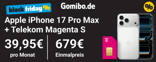 Bei Gomibo bekommt ihr das Apple iPhone 17 Pro Max 256GB + 30GB 5G + Alles-Flat im Telekom-Netz für 39,95€/Monat