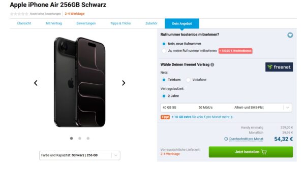 Fazit: Starker Deal mit dem iPhone Air im Telekom-Netz bei Interesse sollte man hier zeitnah zuschlagen.