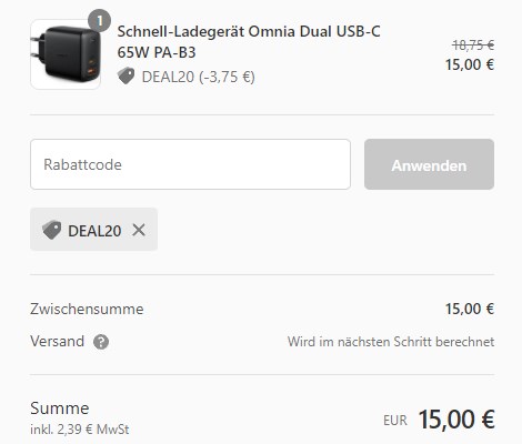 Die Versandkosten sind im Dealpreis bereits enthalten.