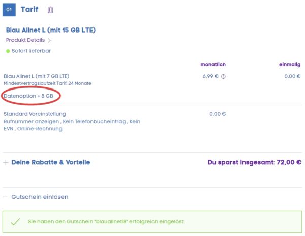 Du musst ja auch wie angegeben den Gutschein blauallnetl8 im Warenkorb verwenden 🙂
